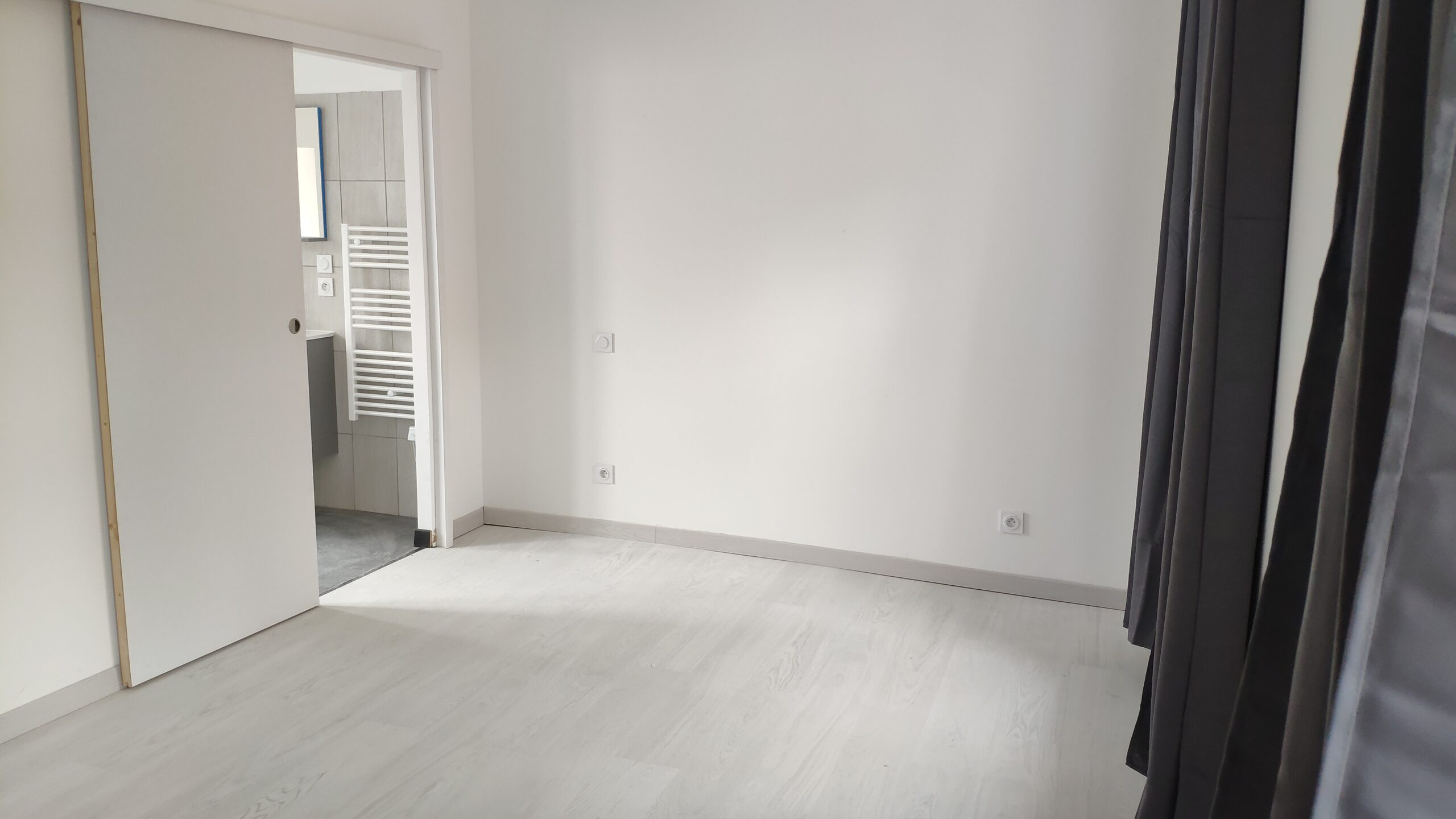 A l’étage, l’appartement dispose d’une grande chambre comprenant une salle d’eau ainsi qu’un WC